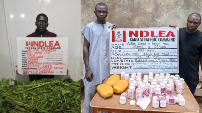 A 75-year-old grandpa Uchelue Ikechukwu was among six suspects arrested with illicit substances in raids by operatives of the National Drug Law Enforcement Agency (NDLEA) in parts of Anambra state just as 30-year-old Alfa Andrew was taken into custody following the destruction of 178, 750 kilograms of skunk on his 71.5 hectares of cannabis farm in Mayodoga forest, Sardauna local council area of Taraba state.