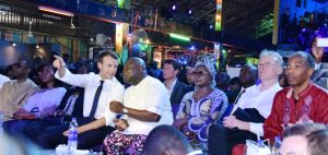 President of France, Mr. Emmanuel Macron on Tuesday night made a historic visit to the Afrika Shrine, home of the late Afrobeat legend, Fela Anikulapo Kuti, describing it as an iconic centre for the propagation of African culture, strength and music.