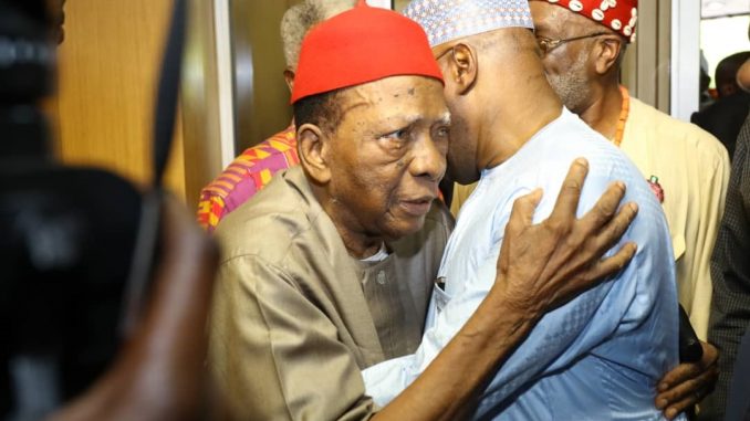 See trending picture of Prof. Ben Nwabueze and Atiku as PDP candidate meets Igbo leaders 14/11/2018 Frontline News News, Photo News, Politics PDP Presidential candidate Atiku Abubakar and foremost constitutional lawyer, Prof. Ben Nwabueze (SAN) embrace Post Views: 12 PBAT’s Oil and Gas ReformsPBAT Administration @2NNPC Recruitment